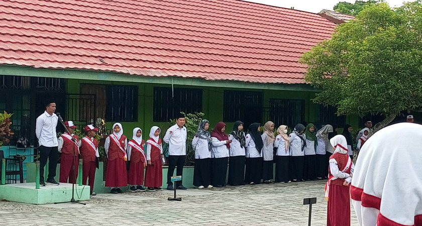 Palangka Raya - Madrasah Ibtidaiyah Negeri (MIN) 5 Kota Palangka Raya melaksanakan kegiatan rutin upacara bendera, Senin, 3 November 2025 di halaman madrasah. Petugas upacara pada kesem